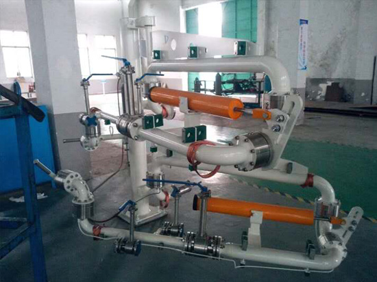 襯四氟鶴管是指工藝管線采用襯四氟(聚四氟乙烯)管道的裝卸車鶴管。